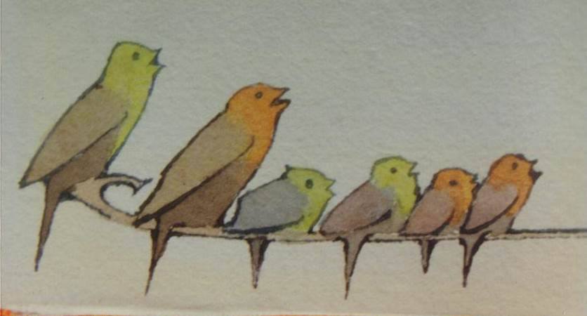 Detail of birds that Archibald Knox would often incorporate singly or in a group on his illuminated lettering.