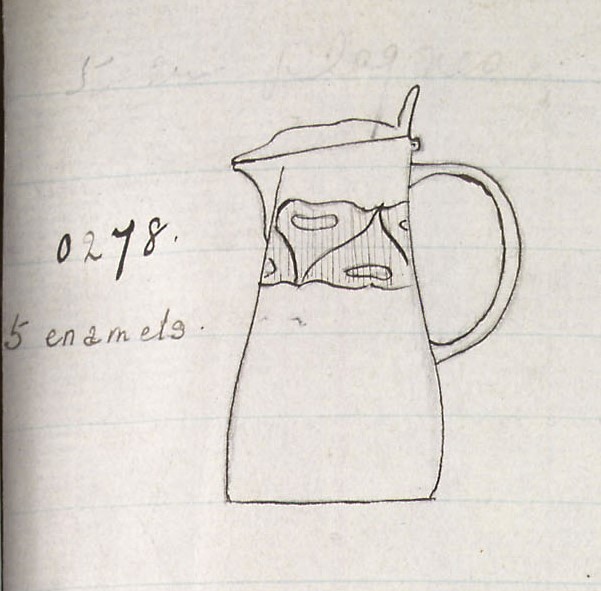 421106, and the Liberty pewter sketchbook states that there is a variant with 5 enamels.