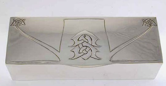 Silver Box with typical Archibald Knox decoration and cigar box cedar wood lining.