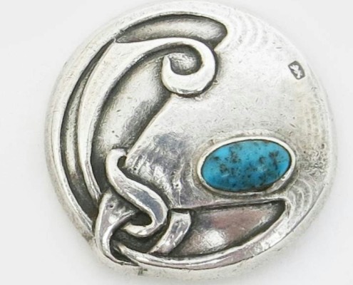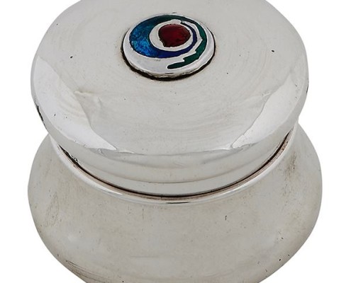 A rare silver caviar server with opals designed by Archibald Knox for Liberty & C0. and dated 1904.