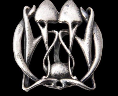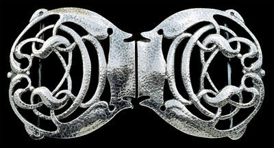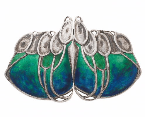 A rare silver caviar server with opals designed by Archibald Knox for Liberty & C0. and dated 1904.