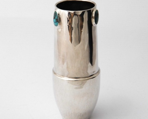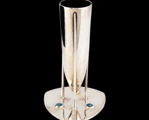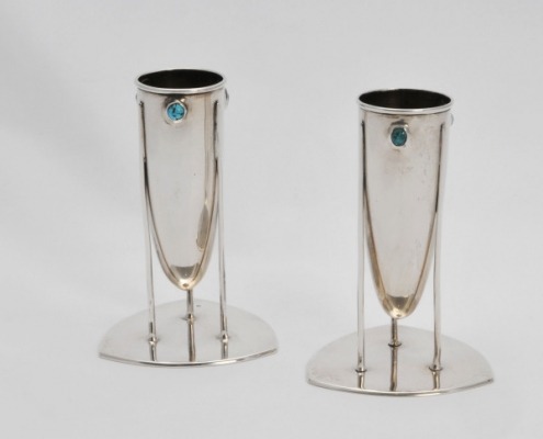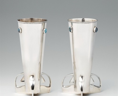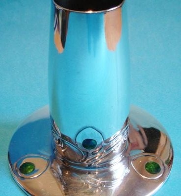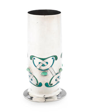 A rare silver caviar server with opals designed by Archibald Knox for Liberty & C0. and dated 1904.